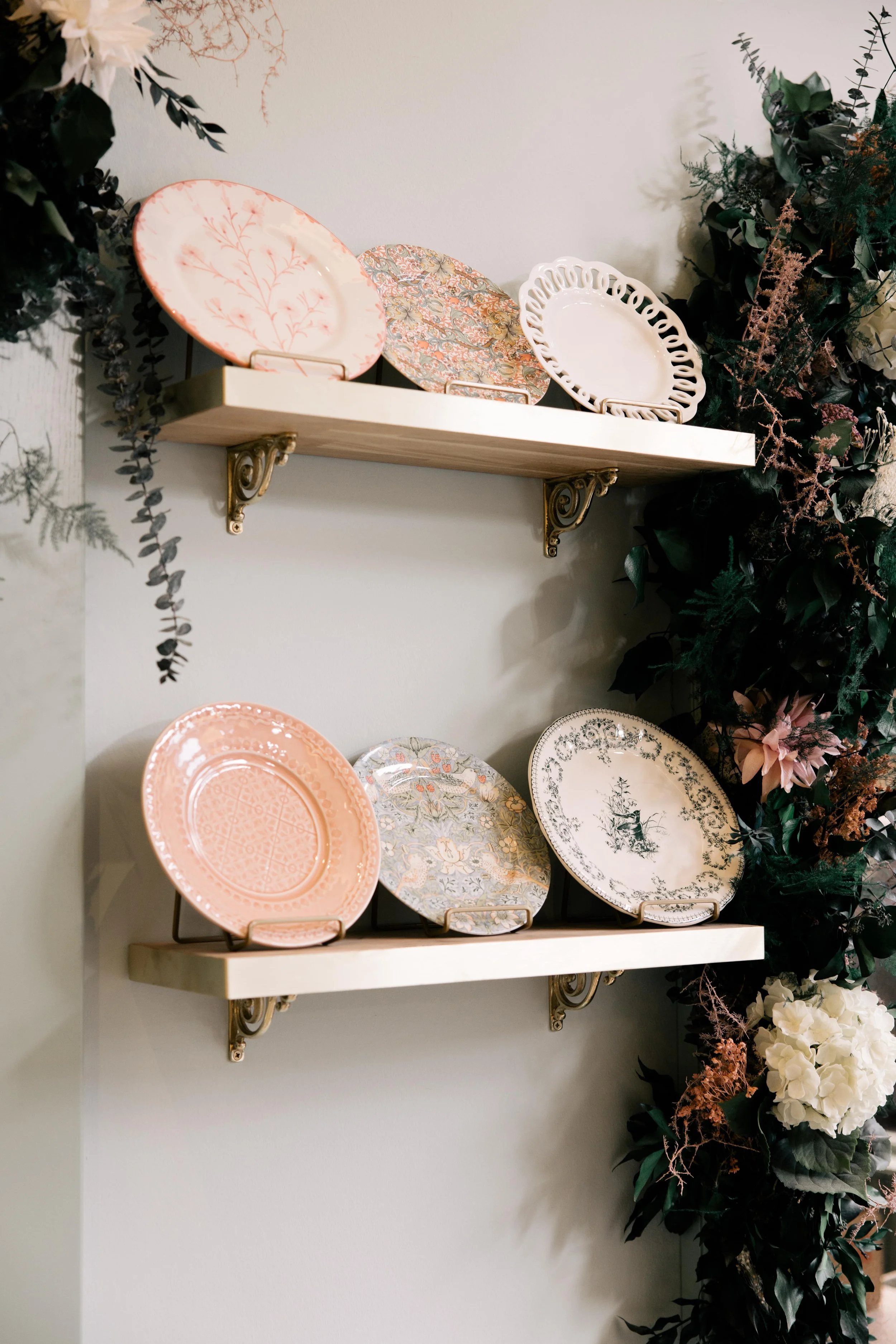 The palette is a fresh combination of soft pinks and pistachio greens complimented by a curated arrangement of dried flowers.