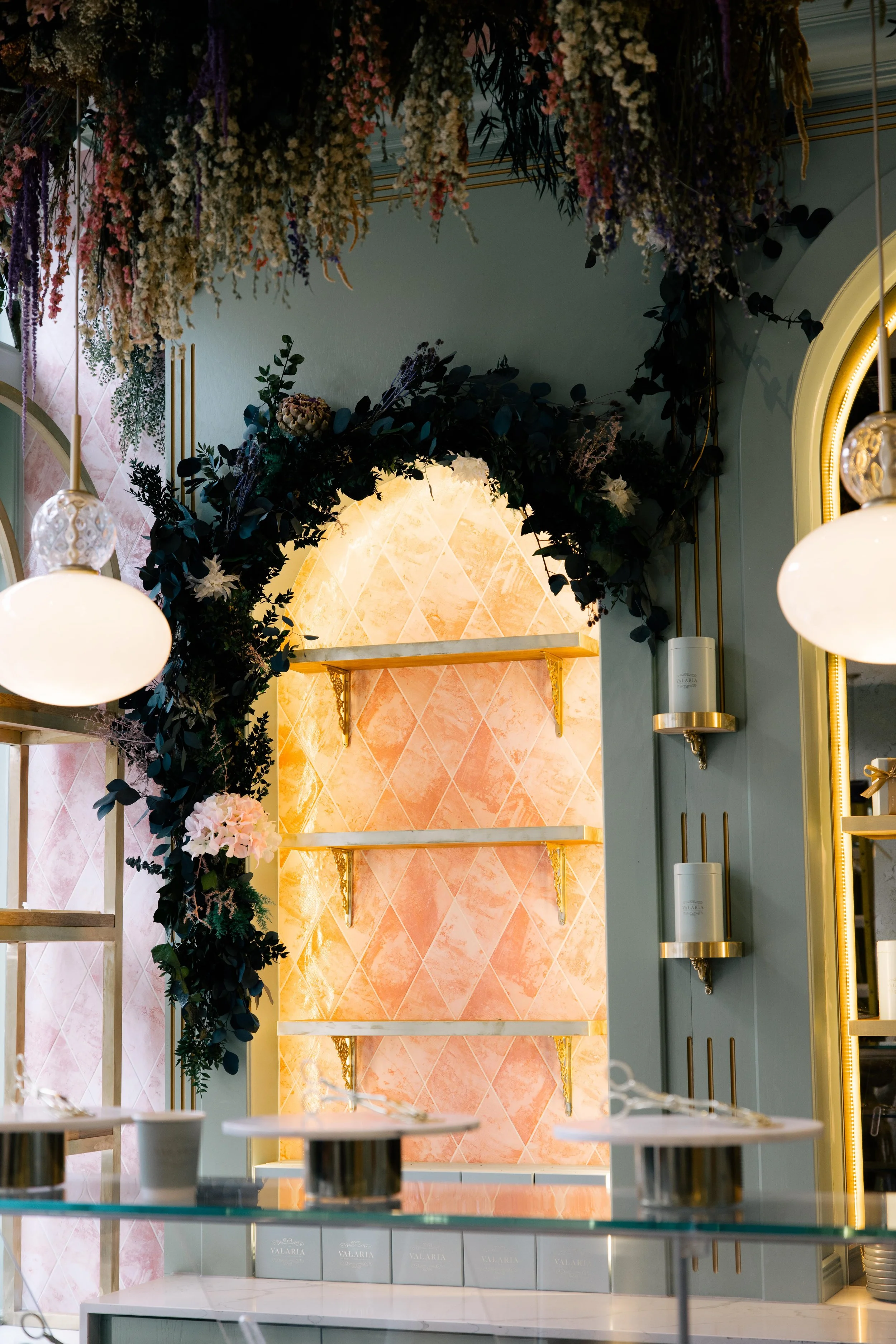The interiors offer a Parisian feel encapsulated by arches each performing their own role, framing the antique mirror, a view outside or hosting the bakeries shelving.